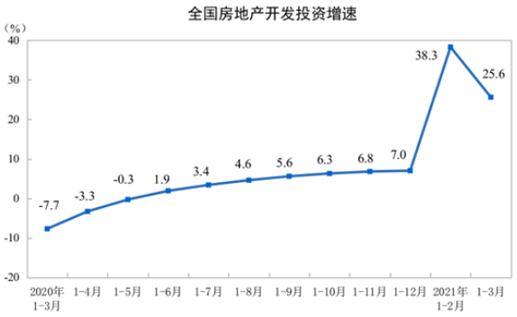 国家统计局公布2021年1—3月份全国房地产开发投资和销售情况显示,1—3月份,全国房地产开发投资27576亿元,同比增长25.6%;比2019年1—3月份增长15.9%,两年平均增长7.6%。其中,住宅投资20624亿元,增长28.8%。