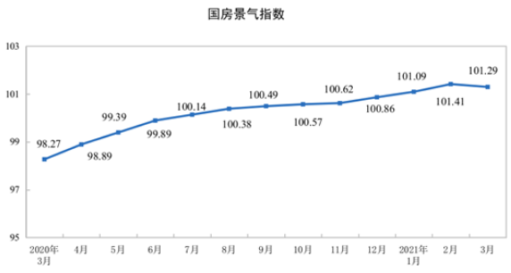 此外,数据显示,3月份房地产开发景气指数(简称“国房景气指数”)为101.29。