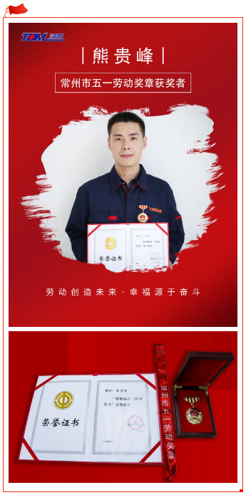 日前,在“五一”国际劳动节即将到来临之际,常州市委、市政府隆重举行常州市庆祝“五一”国际劳动节大会,热烈庆祝全世界工人阶级和劳动群众的盛大节日,表扬为常州经济社会发展作出突出贡献的先进集体和个人,动员和号召全市广大职工以劳模、工匠为标杆,为打造“国际化智造名城、长三角中轴枢纽”,建设“强富美高”新常州作出新的更大贡献。江苏汤姆集团——江苏汤姆森智能装备有限公司调试部优秀骨干熊贵峰荣获:“常州市五一劳动奖章”!