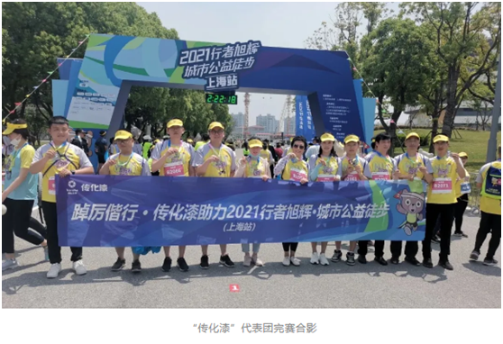 2021年5月,行者旭辉·城市公益徒步如期而至。其中,上海站活动升格成为2021上海城市业余联赛长三角第二届城市公益徒步赛,由上海市体育局、上海市体育总会、旭辉集团联合主办,现场吸引了近5000人热情参与。传化漆作为旭辉集团的战略合作伙伴之一,品牌支持赛事之余,也派出了“传化漆”代表团参加活动,与客户同心同力、同路同行,共襄公益徒步盛举。