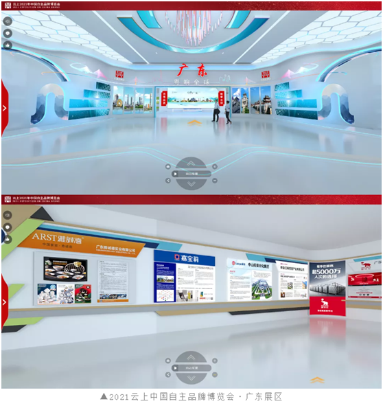 2021云上中国自主品牌博览会·广东展区以“粤响全球”为主题,通过“广东创新”“广东智造”“广东数字”“广东服务”“广东生活”五大板块,展示近年来广东省经济社会各个领域的品牌建设重要成果,全方位展现“优粤品质,响誉全球”的广东品牌形象。