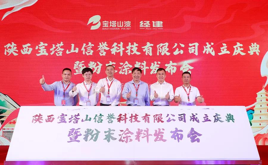 大势所趋,未来所在!在陕西宝塔山信誉科技有限公司成立仪式环节,公司领导与合作伙伴、嘉宾和客户共同上台,涂撒粉末开启“陕西宝塔山信誉科技有限公司成立庆典暨粉末涂料发布会”多彩鎏金沙流沙显字,标志着宝塔山漆成功开启粉末涂料的新征程。