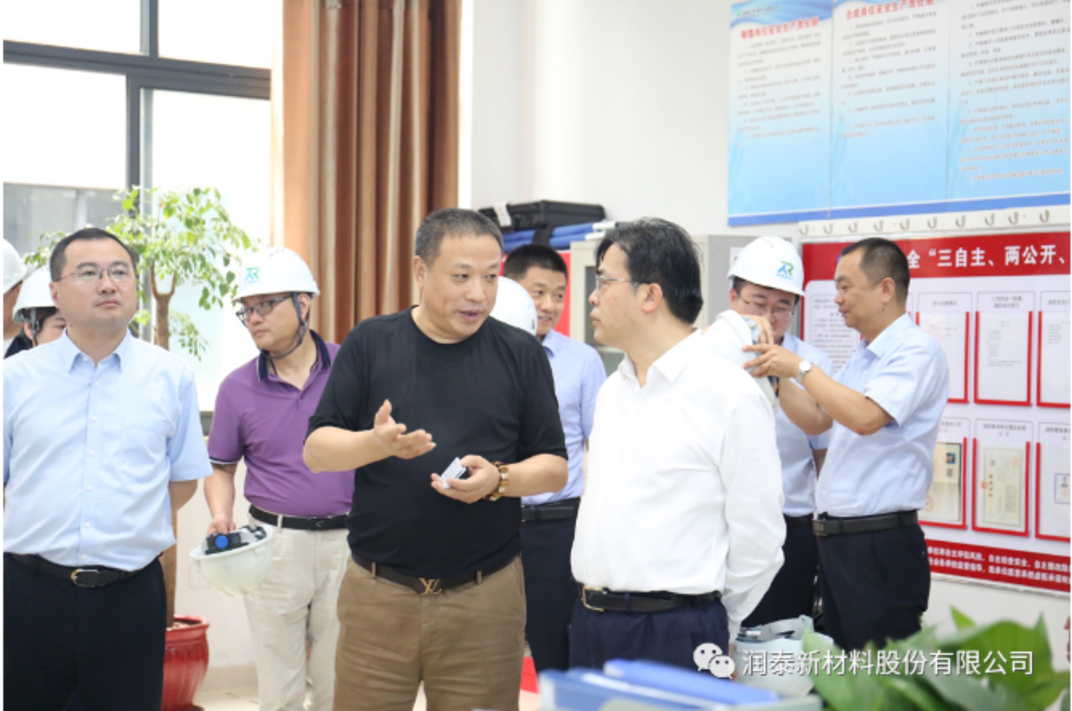 6月2日,中国农业银行江苏省分行行长张建良携团队赴泰兴经济开发区和润泰新材料股份有限公司调研。泰兴市委常委、常务副市长刘文荣,经济开发区管委会主任朱为祥陪同调研。润泰新材董事长张世元、管理中心负责人陈亚军参加座谈。