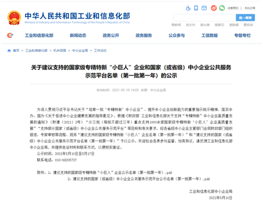 近日,工业和信息化部公示了“建议支持的国家级专精特新‘小巨人’企业名单(第一批第一年)”,信和新材料股份有限公司入围。