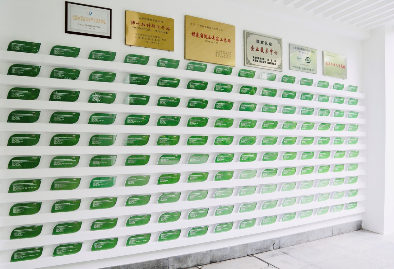 高度重视科技创新的三棵树,现有科研和技术人员1000多人,组建了30多个技术创新团队,由诺贝尔化学奖得主杰马里•莱恩教授担任首席技术顾问。三棵树还承担了国家“863”计划、省市科技计划项目等多项重要前沿科研课题,并与中科院、清华大学、上海交大、厦门大学等科研院所建立了产学研合作,取得了多项行业领先的科研成果。三棵树已经构建了完备的科研与技术研究基础设施,总部研发中心面积达6000平方米,拥有国家认定企业技术中心、博士后科研工作站、院士专家工作站和CNAS国家认可实验室、省级工程研究中心等多个创新平台,配置了100多台高端科研设备。三棵树参与了85个国家、行业等各项标准的制定,现拥有300多件授权专利,研制了30多个一级保密配方,并发表了核心技术期刊论文46篇。三棵树积极践行“以用户为中心、与合作伙伴共赢、与奋斗者共享”的核心价值观,推行“极致健康、极致性能、极致应用”的研发理念,打造新材料、新一代、新应用的“三新”产品,目前已研发8000多支产品,满足用户全屋一站式绿色建材需求。