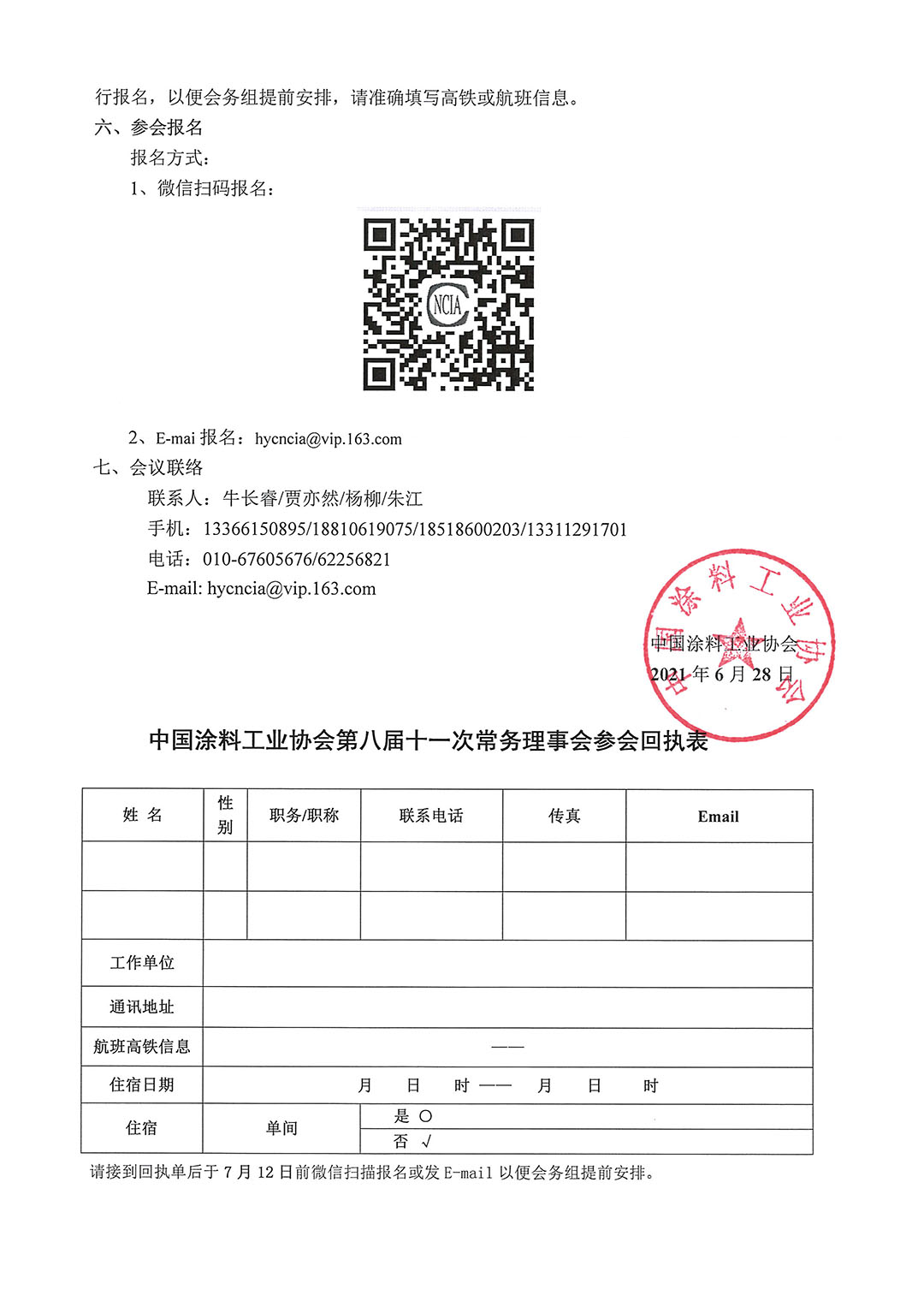 请接到回执单后于7月2日前微信扫描报名或发E-mail以便会务组提前安排。