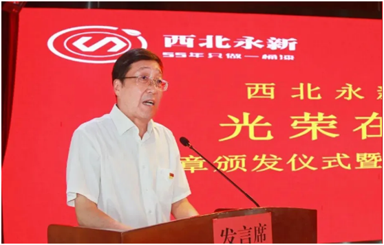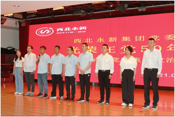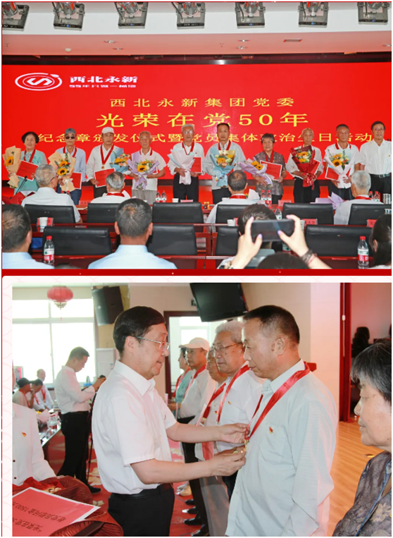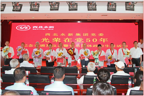 近日,西北永新集团党委“光荣在党50年”纪念章颁发仪式暨党员集体政治生日活动在九楼多功能厅举办。集团领导班子成员、获得“光荣在党50年”纪念章的离退休党员代表、过政治生日党员代表及其他在职党员代表等180余人参加了活动。
