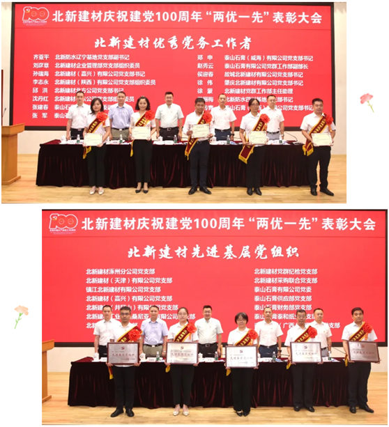 日前,北新建材召开庆祝建党100周年“两优一先”表彰大会,表彰了60名“优秀共产党员”、15名“优秀党务工作者”、14个“先进基层党组织”。北新建材党委书记、董事长王兵出席会议并讲话。党委委员、副总经理管理主持会议。