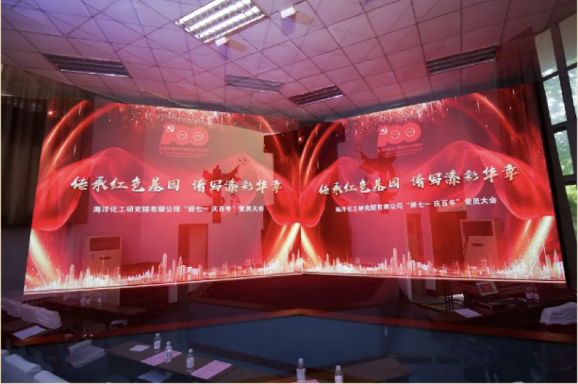 6月30日,海化院召开“迎七一 庆百年”党员大会庆祝建党100周年。会议以传承红色基因 谱写漆彩华章为主题,公司全体党员、入党积极分子、中层及以上领导干部及民主党派、群众代表等80余人共聚一堂总结党建工作,表彰先进,忆党史,颂党恩。