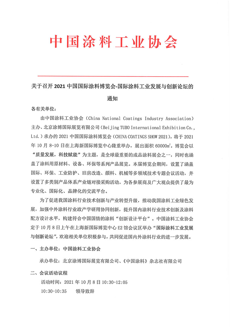 2021中国国际涂料博览会-国际涂料工业发展与创新论坛