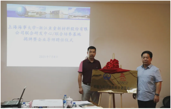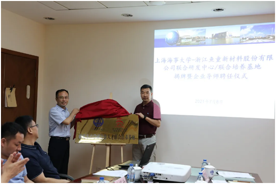 日前, 上海海事大学-浙江鱼童新材料股份有限公司联合研发中心/联合培养基地揭牌暨企业导师聘任仪式在上海海事大学成功举行。上海海事大学党委副书记、校长陆靖先生,上海海事大学党委副书记、副校长李志鹏先生,best365中国官方网站驻会副会长赵君先生、浙江鱼童新材料股份有限公司(以下简称浙江鱼童)董事长梁新方先生、总经理杨亚良先生等十多位来宾共同出席仪式。仪式由上海海事大学商船学院院长张秋荣先生主持。