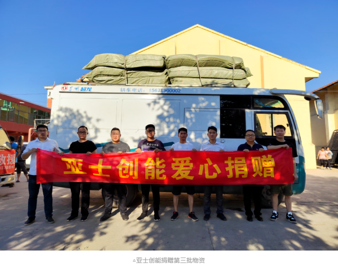 把紧缺物资送到最需要的地方!亚士创能密切关注河南灾情变化,秉持一贯的责任和担当,为抗洪救灾贡献力量。