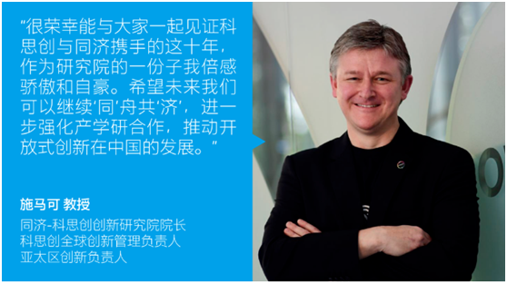 由衷感谢科思创公司十年来持续不断的合作与支持。这十年间,同济-科思创创新研究院在立德树人、科研育人、产学研创新方面取得了令人欣喜的成果。同济大学材料学院也希望通过双方进一步的合作,积极拓展产学研合作新模式。