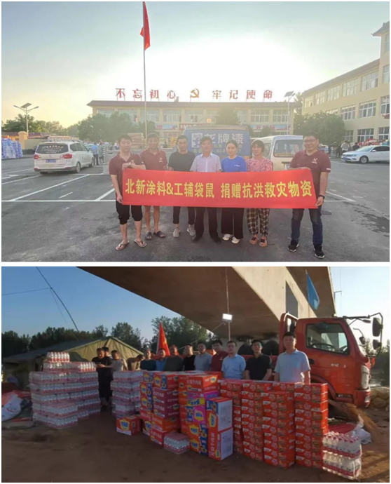 北新涂料联合经销商工辅袋鼠为山东济南救援队赠送当地急需的衣物等物资。