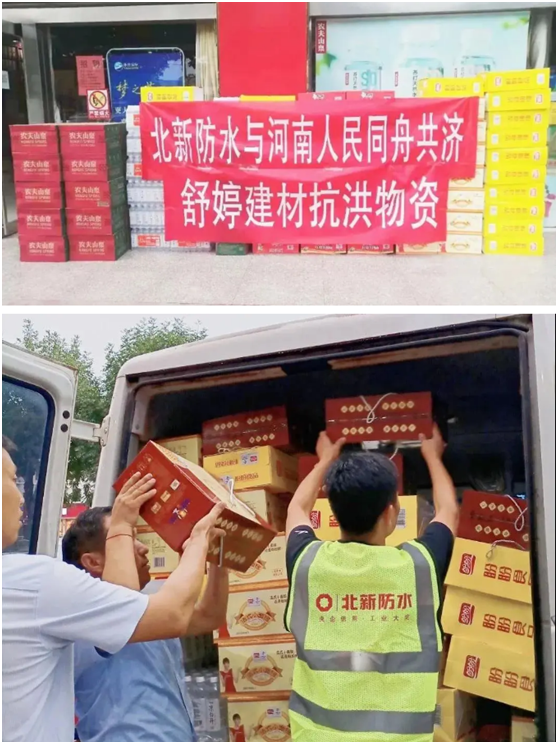 北新防水多家经销商“闻汛而动”,迅速组建队伍,多方筹集物资运送灾区,为灾区被困人员、救援队提供赞助与支持。