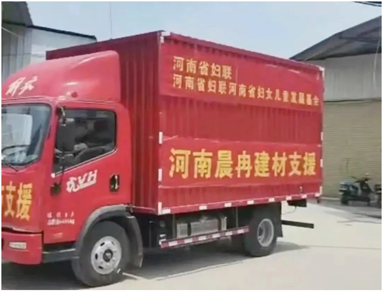 ▲灾情发生后,经销商河南晨冉商贸有限公司在第一时间联系受灾最严重的扶沟县相关部门,组建扶沟援助小组,将装满矿泉水、面包、饼干的一大车应急救援物资第一时间送往灾区。