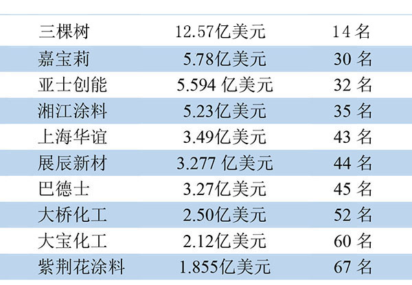 2)*:表中标有星号的公司代表Coatings World的估计。
