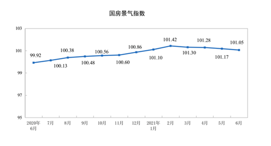 6月份,房地产开发景气指数(简称“国房景气指数”)为101.05。