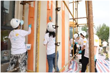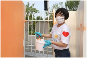 PPG与天津开发区慈善协会合作,为本次活动投入了总共93加仑(352升)的申纽丽TM漆外墙涂料,共计超过50 000美元(约人民币330 000元)的产品和服务。