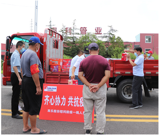 日前,双乐颜料股份有限公司党总支组织慰问队,深入到疫情防控的一线卡口,给奋战在高温现场的疫情防控人员送去真切慰问。