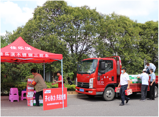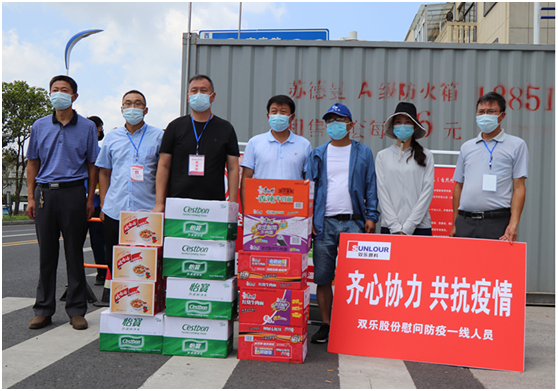 江苏省兴化高新技术产业开发区副主任张跃军、兴化市团市委书记沈妍、戴南镇副镇长周洪波、戴南镇驻厂员谭华平以及戴南镇相关部门领导参加活动,在感谢双乐慰问的同时,高度赞扬双乐股份作为上市企业的社会责任感,并号召镇企紧密联合,齐心抗疫,共同夺取新的胜利。