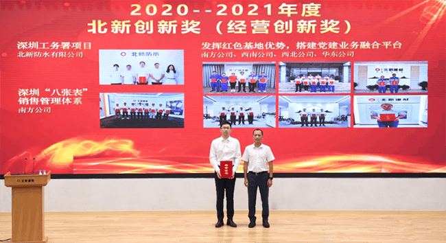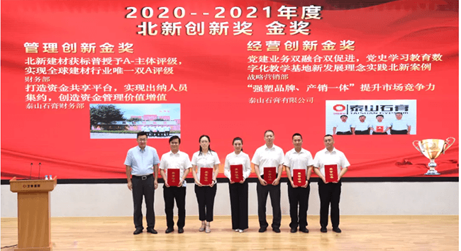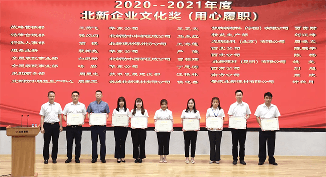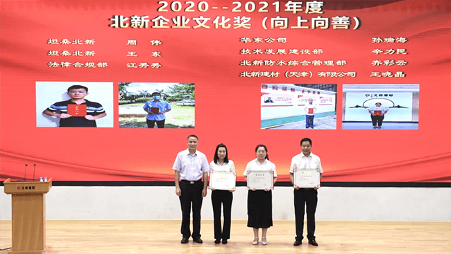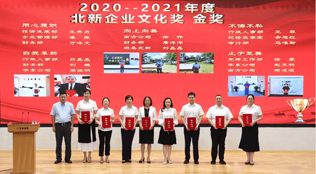 8月27日,北新建材8·28文化节系列活动——庆祝北新建材42周年暨2021企业文化表彰大会在北新科学院隆重举行。会上表彰了荣获“2020-2021年度北新企业文化奖、北新创新奖、最佳业绩奖、红色标杆争创奖”的单位、个人和创新项目。北新建材党委书记、董事长王兵,北新建材专职董事宋伯庐,以及在京高管出席大会并为获奖者颁奖,党委委员、副总经理、工会主席管理主持表彰大会。因疫情防控原因,部分获奖单位、获奖同事无法亲临现场,本次大会采取现场与线上相结合的方式进行,北新建材全级次企业通过网络直播观看了表彰大会。