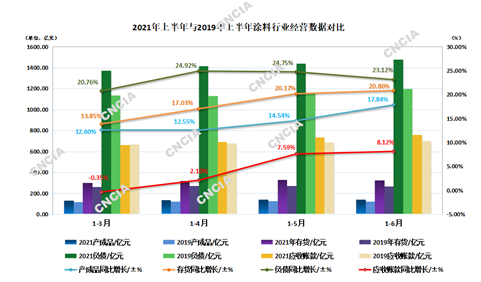 图3 2021年上半年和2019年上半年涂料行业经营数据对比图