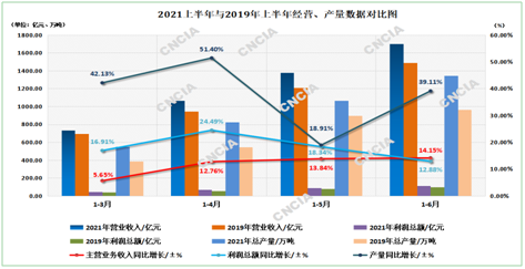 图1 2021年上半年与2019年上半年经营、产量数据对比图