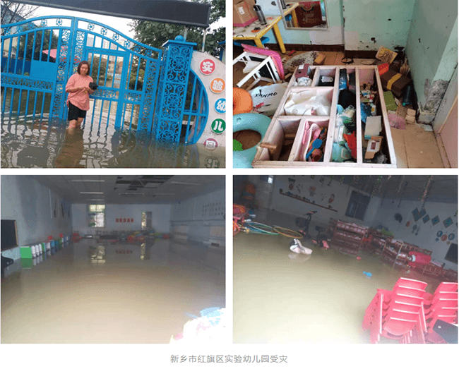 红旗区实验幼儿园园长王化丽说:“没有想到暴雨受灾会这么严重,当时整个园区全被水淹没了,原本美丽的园所一下失去了往日色彩,孩子们的教室、休闲室和游乐场,还有那些花树全都浸泡在水中,看着实在是难受。”
