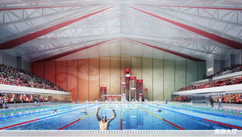 项目建设用地面积5.75公顷,总建筑面积40000m2,包括观众看台、普通观众用房、VIP观众用房、运动员用房、游泳比赛、训练、娱乐场地、训练中心、管理办公(兼竞赛管理)用房、新闻媒体用房、比赛与管理技术用房、商业用房、室外停车位等功能区域,可容纳观众6000人。