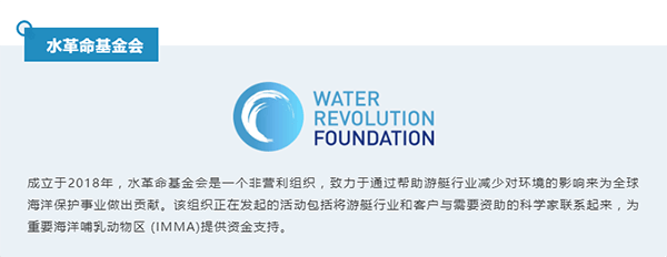 成立于2018年,水革命基金会是一个非营利组织,致力于通过帮助游艇行业减少对环境的影响来为全球海洋保护事业做出贡献。该组织正在发起的活动包括将游艇行业和客户与需要资助的科学家联系起来,为重要海洋哺乳动物区(IMMA)提供资金支持。