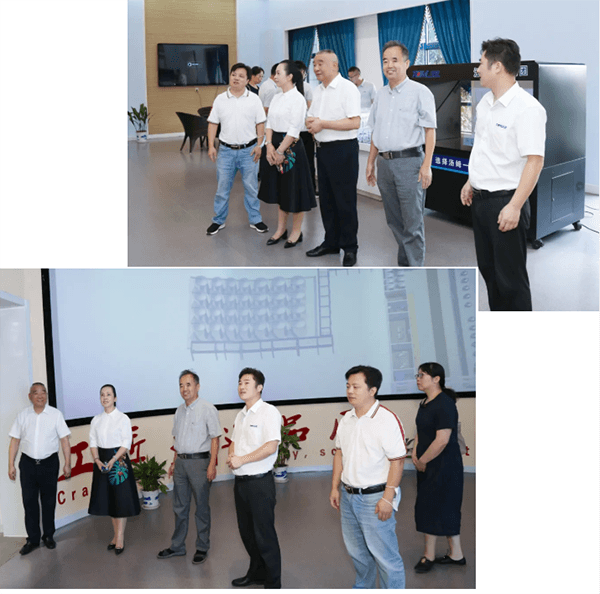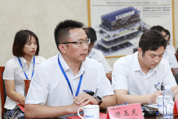 江苏汤姆集团董事长汤建华、江苏汤姆集团总裁张正宝、江苏汤姆森智能装备有限公司总经理王芳、江苏汤姆集团财务总监兼工会主席吴芳、常工研发部部长兼汤姆森教育培训学校校长刘路、技术部总监蔡健、技术部部长马杰、电气部部长陈玉龙、知识产权与信息安全部部长钱成龙、行政部副部长尤妤陪同接待。
