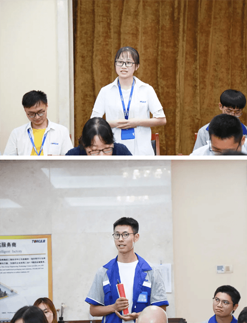 仪式结束,学生们纷纷踊跃表达自己入职后的感想,并提出自己的建议。