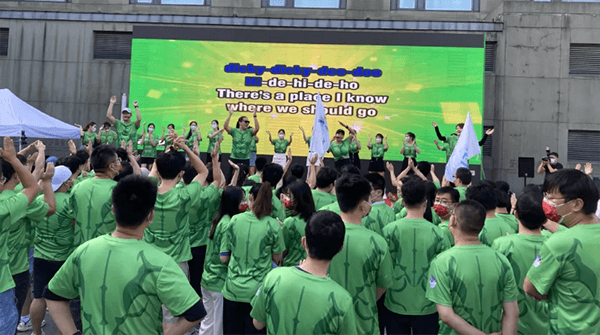 今天活动的开场别开生面,全体人员载歌载舞,其乐融融。