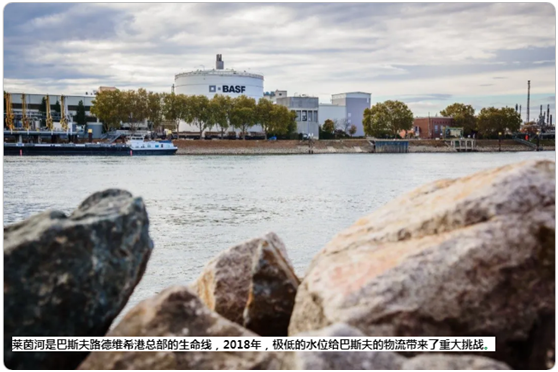 莱茵河是巴斯夫路德维希港总部的生命线,2018年,极低的水位给巴斯夫的物流带来了重大挑战。