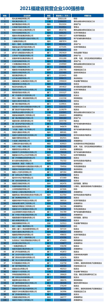10月15日,福建省工商联在三明发布“2021福建省民营企业100强”“2021福建省创新型民营企业100强”“2021福建省民营企业制造业50强”榜单。三个榜单中,三棵树均榜上有名。