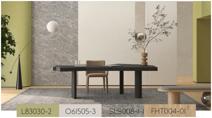 自然的触感、原始的线条、清新的色调,以分散互补的搭配方式出现在艺术漆与科创板中,避免色彩单调感的同时,焕醒空间活力,也为心灵注入源源不断的力量。