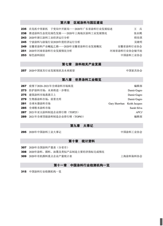 《中国涂料工业年鉴2020》的编撰出版,内容翔实,实用性强。共分11个章节。特别重磅发布了中国涂料行业“十四五”规划,梳理了2020年中国涂料工业经济运行现状,收录了2020年度与涂料和颜料行业相关的政策法规及标准,整理了国内主要地区的涂料工业运行现状,以及全球不同涂料领域市场发展状况,总结了我国主要涂料细分领域、涂料用原材料工业的新进展和市场走势,收录了中国涂料行业检测机构,记录了2020年我国涂料行业经历的重要事件,收集整理了涂料和颜料及下游行业统计数据等,并发布了2021年亚太涂料排行榜、世界涂料制造企业排行榜等。