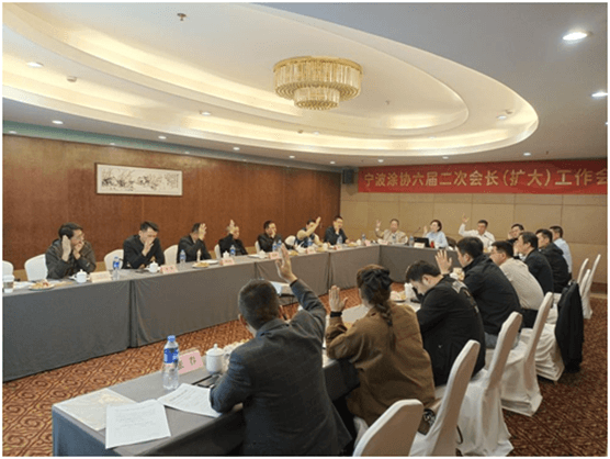 会上,汪立波会长提出宁波涂协增设第六届常务副会长一名,由宁波双人新材料有限公司夏行总经理担任,并经举手表决通过。常务副会长的设立促进了协会工作的更好开展。