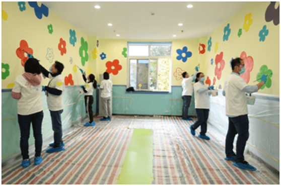 2021年11月2日,PPG“多彩社区”活动在天津市星佑宝贝自闭症康复中心成功举办。此次“多彩社区”活动共有近40名PPG天津工厂员工志愿者参加,贡献了近150个小时,美化了整体室内环境。