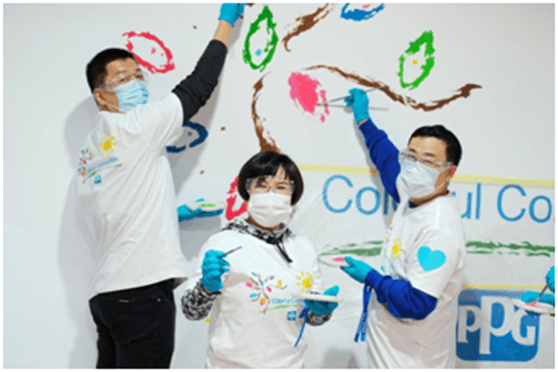 PPG发起并倡导的“多彩社区”项目旨在支持、保护并美化PPG在世界范围内经营所在的社区。通过“多彩社区”项目,PPG的员工志愿者们投入时间并捐赠PPG涂料产品对社区进行改造,参与到包括从粉刷教室、以色彩装点产科病房,到重新设计游乐场等各类活动中。自2015以来,PPG已完成330个“多彩社区”项目,影响范围覆盖42个国家超过670万人。