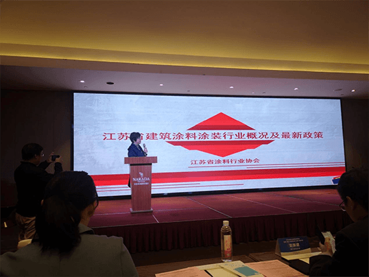 江苏省涂料行业协会刘泽曦副秘书长作了江苏省建筑涂料涂装行业概况及最新政策报告。