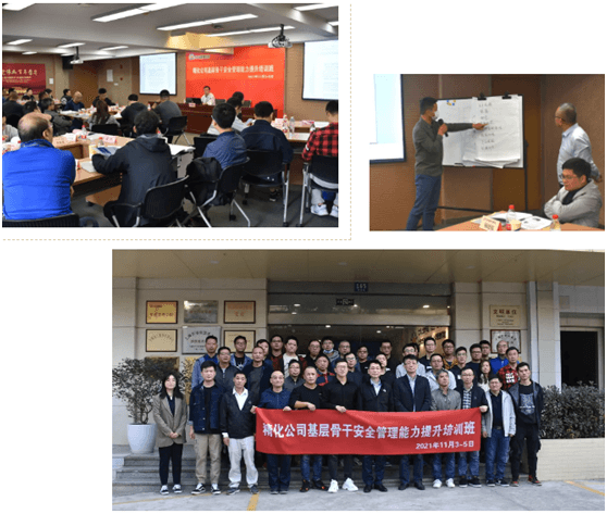根据公司年度培训工作计划,在集团安环中心指导下,公司“基层骨干安全管理能力提升培训班”成功举办。本期培训利用集团在线学习系统,首次采用了“线上+线下”的培训模式,10月20日-11月2日,学员利用电脑、手机等设备完成线上课程学习,11月3-5日在华谊党校进行了为期三天的脱产线下学习。线下培训共设置了《精化主要生产基地现状、安全分级管控及HSE法规宣讲》《如何落实班组长的安全责任》《TWI一线主管技能提升训练》、《如何管好、用好和保养好设备》四门课程。培训班旨在明确基层骨干工作职责,掌握解决问题的方法和管理技能,运用安全管理工具,提高企业安全管理基础。华谊涂料、开林造漆厂、试四赫维、三爱思和宜兴一品5家企业的36名一线基层骨干参加了本次培训。