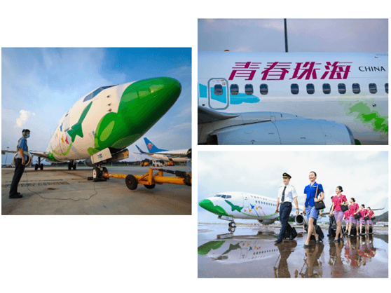 南航为了充分展现珠海“活力之都”的城市文化,推出了两架主题号彩绘飞机。率先揭开面纱的“青春珠海号”,在我们和南航的协同合作下穿上了代表青春的绿色外衣。