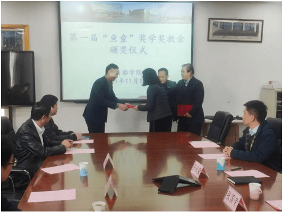 张秋荣院长为此次典礼致辞,他指出鱼童公司设立奖学奖教金是对他们教育工作的肯定以及支持。而此次颁奖典礼的目的是表彰那些各方面表现突出并取得优异成绩的师生,他希望此次获奖的师生们能戒骄戒躁,继续将满腔热情投入到工作和学习中去,不断追求,不断超越。