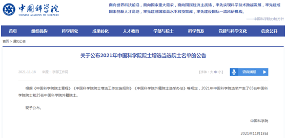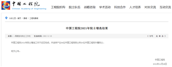 11月18日,两年一度的中国科学院、中国工程院两院院士增选结果公布。