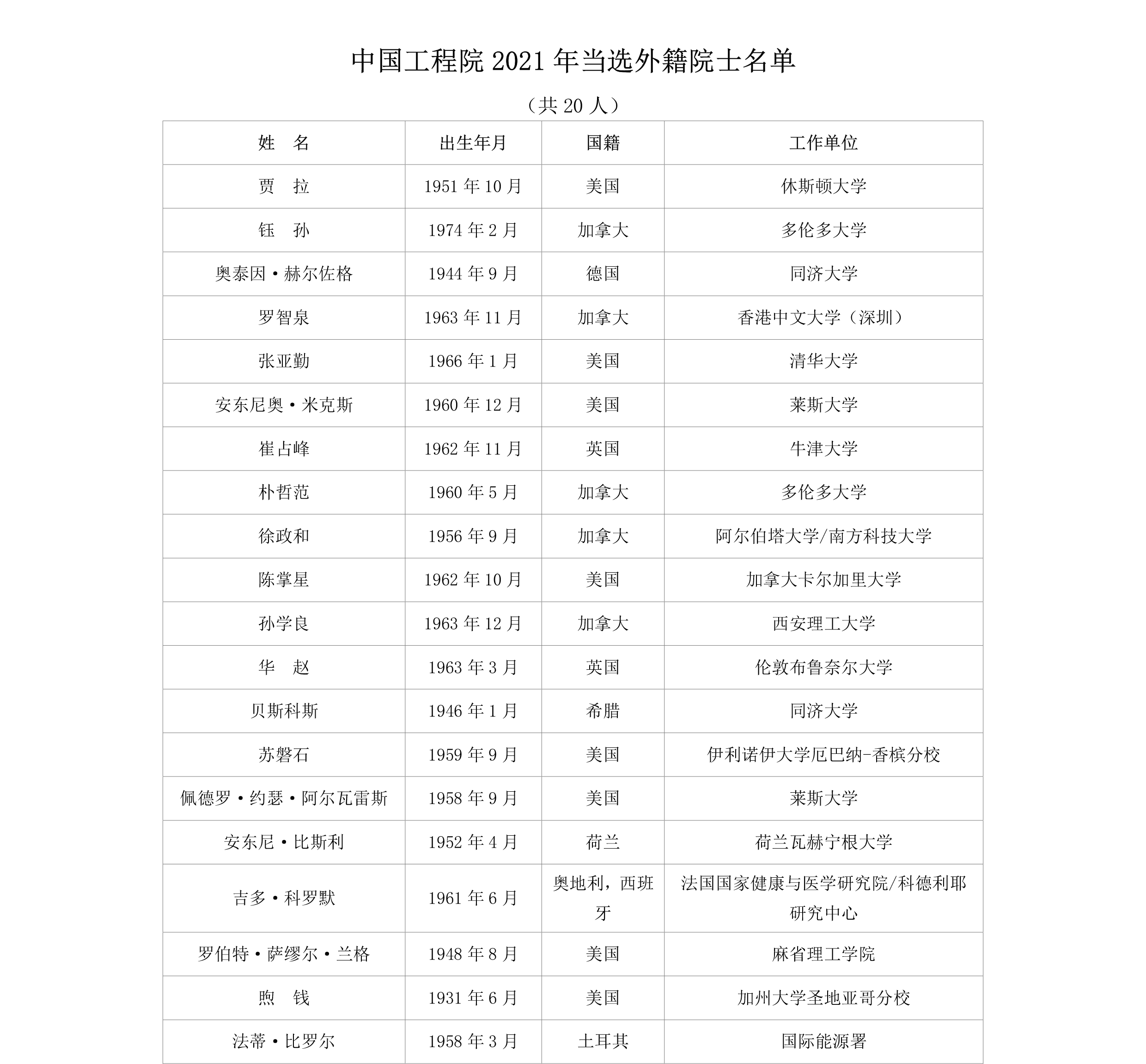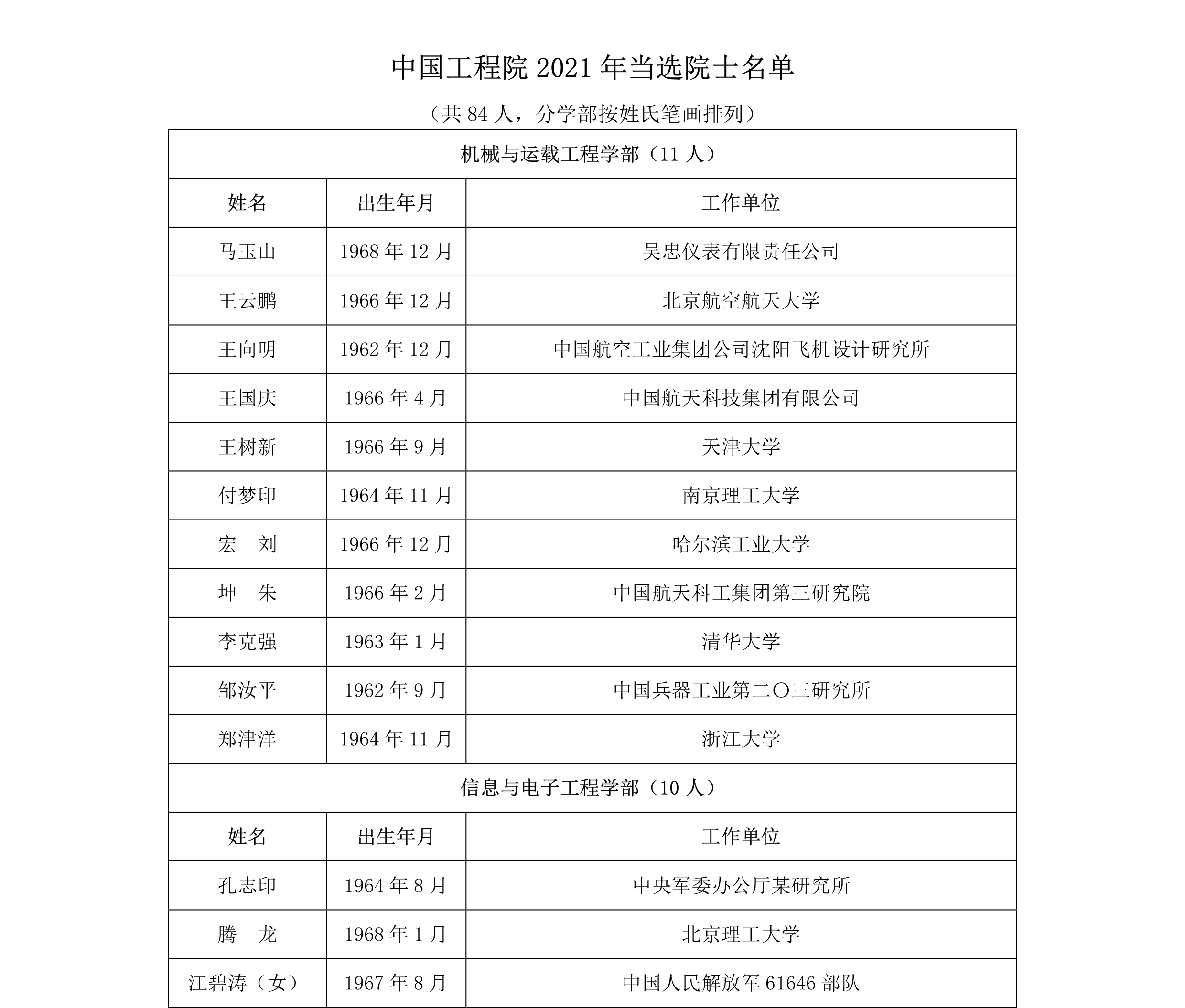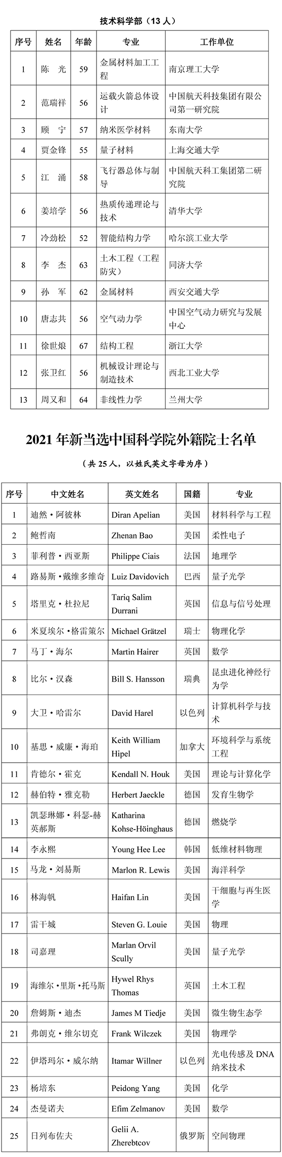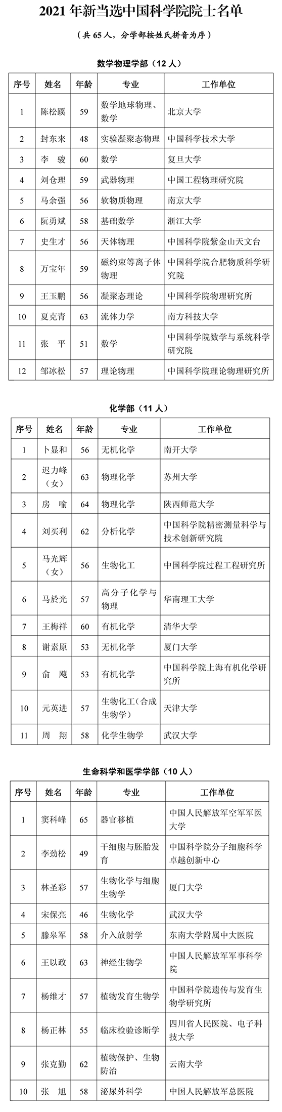 根据两院公告,2021年共增选产生:
