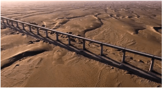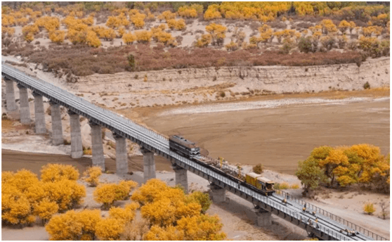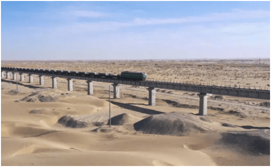 历经1000余个昼夜的艰苦施工,克服横跨60℃的温差,我国铁路建设者迎风斗沙,为防止沙害对施工的影响,该条铁路在建设初期就提出“治沙先行”的建设理念,风沙防护工程与铁路建设同步进行,目前,铁路沿线的一道道绿色长廊已成为防风治沙的天然屏障。