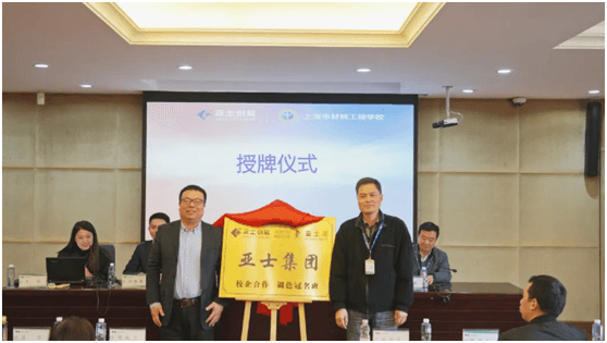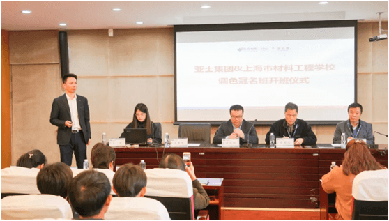 “深化产教融合、校企合作”是党的十九大对技能人才培养作出的方向性、纲领性指导,也是新常态、新时代下技工院校与企业发展的必由之路和必然要求。亚士创能与上海市材料工程学校校企合作首个落地项目——亚士集团调色冠名班,基于校企合作协议,促进了校企双方优势互补、合作共赢,有望成为冠名班合作的典范,为后续长期合作奠定良好基础。