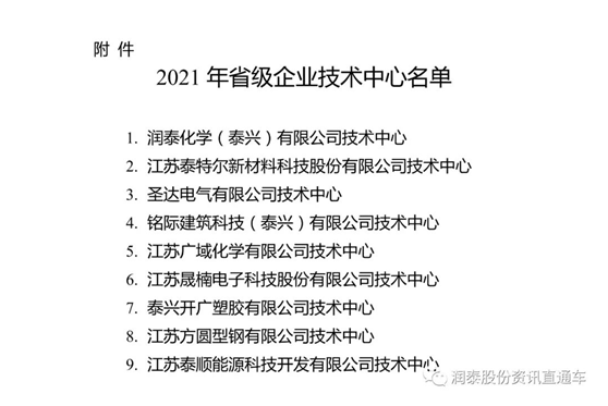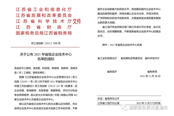 日前,江苏省工业和信息化厅、省发展和改革委员会、省科学技术厅、省财政厅、省税务局等五部门联合公布了2021年省级企业技术中心名单。